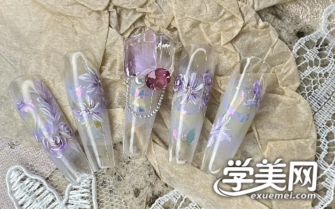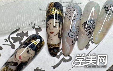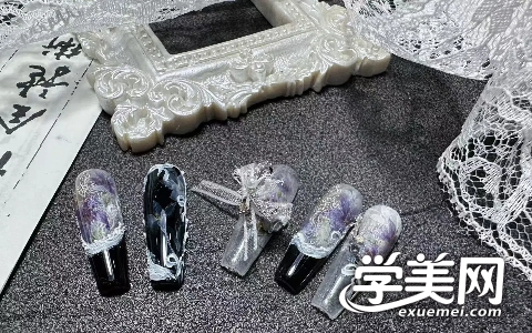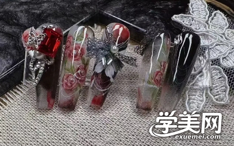 中式,西式新娘甲中式,日式晕染大理石纹、单色玫瑰/蝴蝶画法、日式鎏金纹路、魔镜粉操作