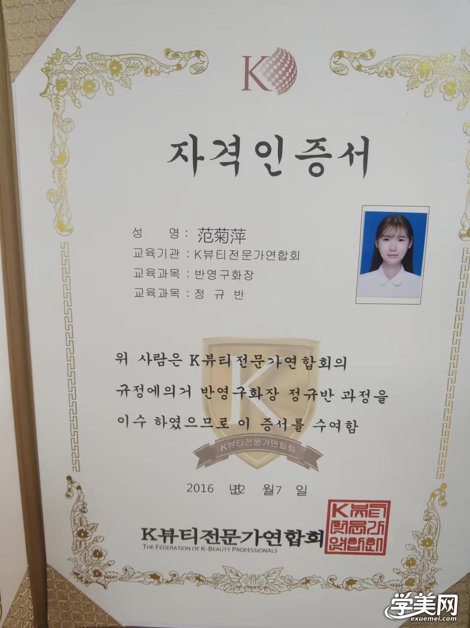 资格证号:西安颜致化妆培训学校